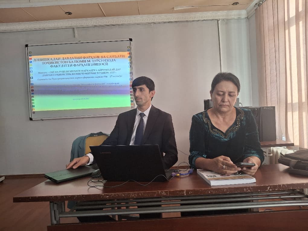 Дар ҳамоиш маърӯзаҳо аз ҷониби мудири кафедраи мазкур, муаллима Раҳмхудоева Бахтибегим, Абдусаломов Мирзошариф ва донишҷӯён — Холиқов Сайфиддин, Ҷаъфаров Сӯҳроб, Шарифзода Сафармоҳ ва Усмонқулов Шералӣ доир ба мавзӯи матраҳ ва бахусус ҷашнҳои чоргонаи бузурги миллӣ (Наврӯз, Меҳргон, Сада ва Тиргон) шунида шуд.
