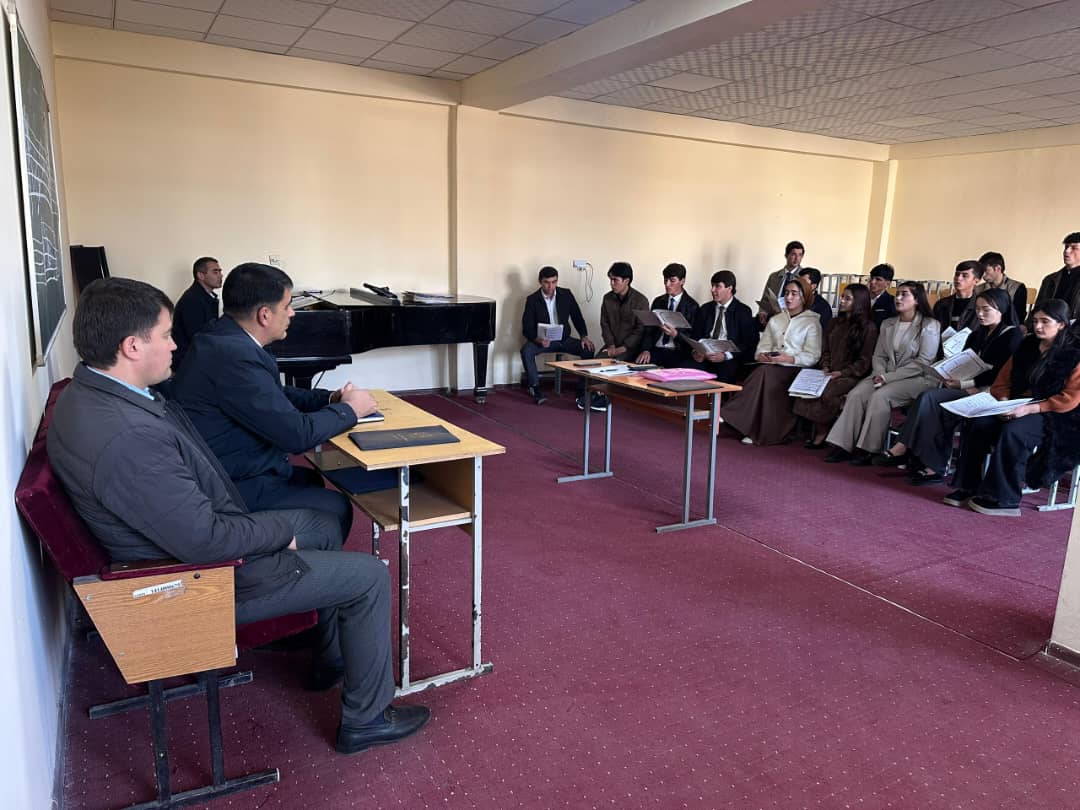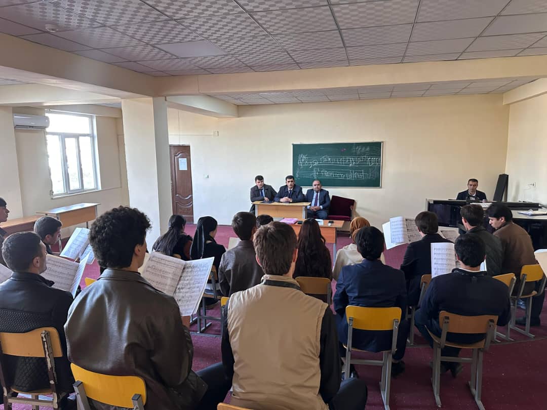 Санаи 18.11.2025 дар факултети мусиқӣ — омӯзгорӣ дарси амалии фанни “Хор” бо иштироки Сардори раёсати таълим, Набиев Ҳ.И. баргузор гардид. Дарси мазкурро омӯзгори ботаҷриба ва ҳунарманд Холов Пайрав бо маҳорати баланд ва равиши муосири педагогӣ пеш бурд.